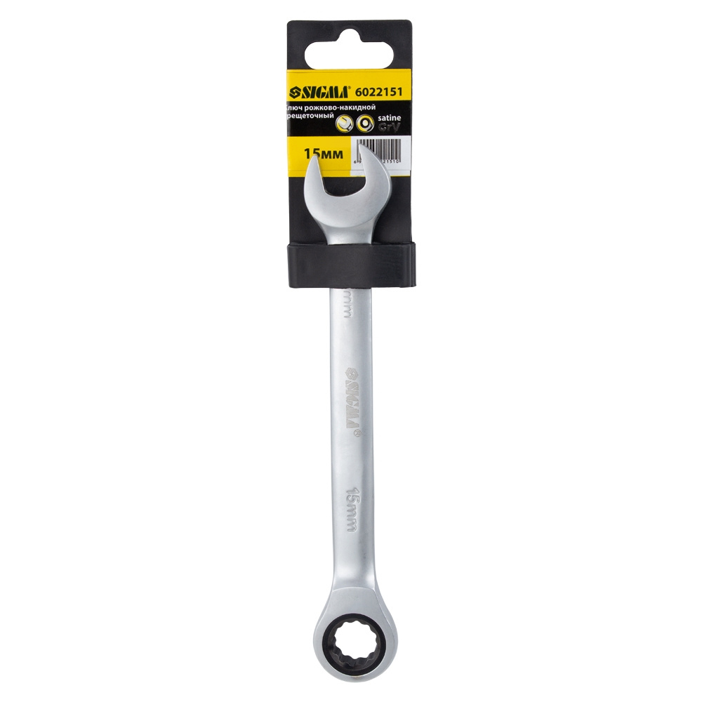 Ключ ріжково-накидний тріскачковий 15мм CrV satine SIGMA (6022151)