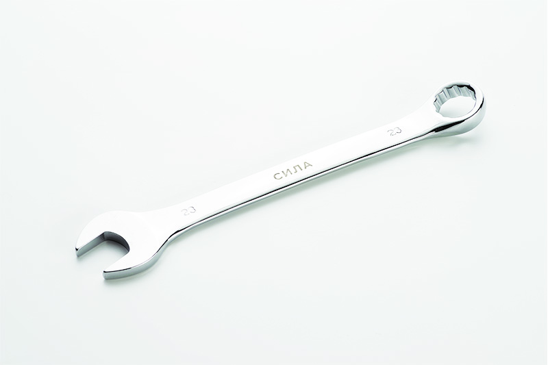 Ключ ріжково-накидний полірований CrV 23мм СИЛА
