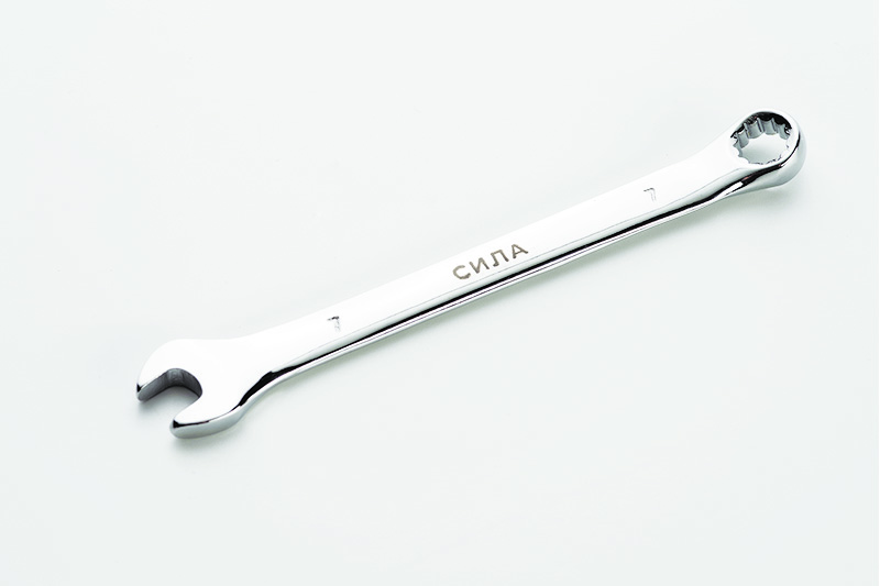 Ключ ріжково-накидний полірований CrV 7мм СИЛА