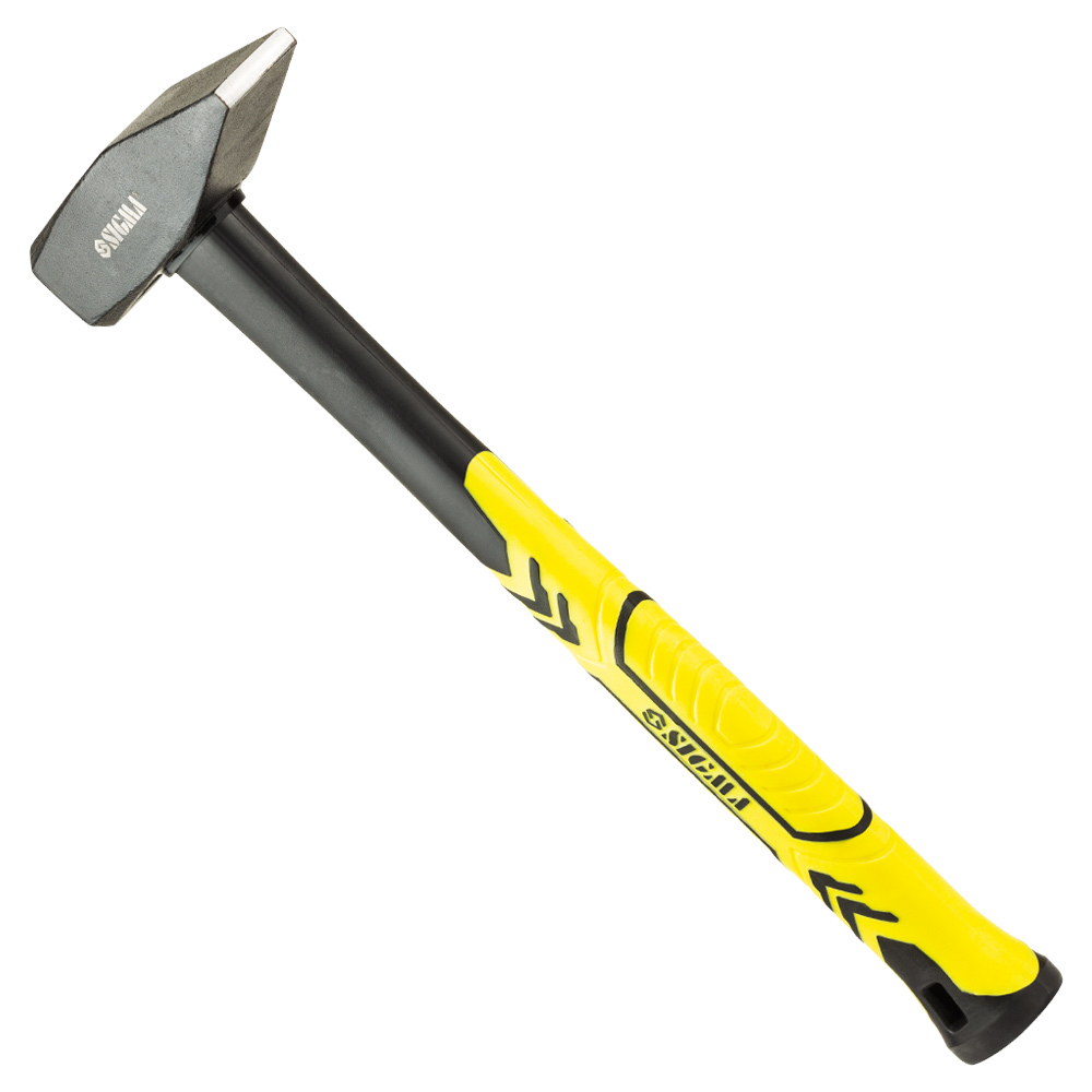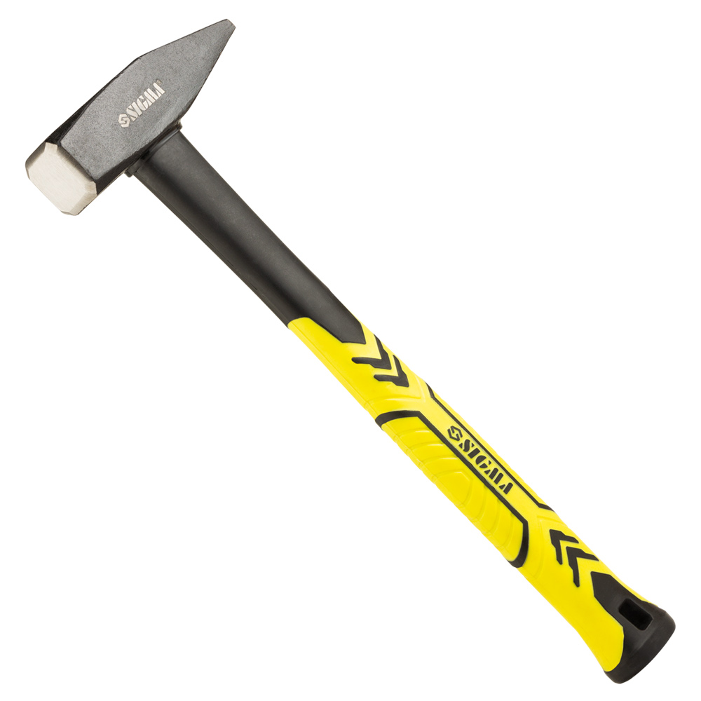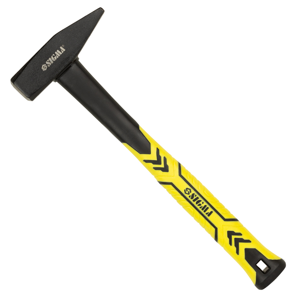 Молоток 800г слюсарний фібергласова ручка Sigma (4316081) застосовується для забивання цвяхів, ручного згинання або кування профільного металу, і так далі. Має міцну ручку зі скловолокна з гумовим протиковзким покриттям, яке не гниє, не усихає, гасить вібрації, стійко до дії олій, бензину та розчинників. Робоча частина виготовлена з кованої, полірованої інструментальної сталі.