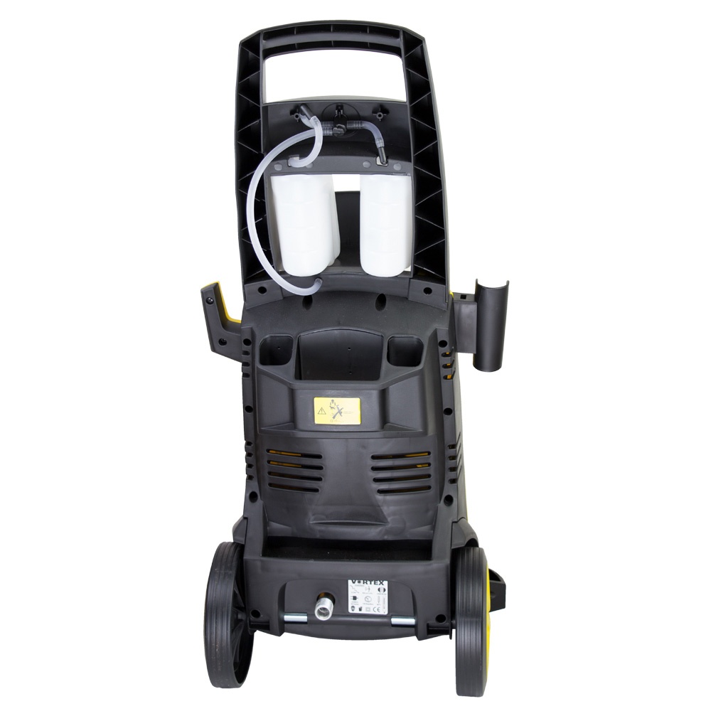 Миття високого тиску 2000Вт max 150bar 7.2 л/хв . Потужність апарату становить 2000 Вт, максимально чинний тиск - 150 бар при продуктивності 7.2 л/хв. Даних показників цілком достатньо якісного видалення навіть найскладніших забруднень. Корпус мийки виготовлений із легкосплавних металів із антикорозійним покриттям, що продовжує термін служби апарату.