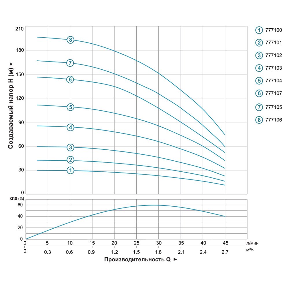 Насос відцентровий свердловинний 0.9кВт H 143(107)м Q 45(30)л/хв Ø80мм AQUATICA (DONGYIN) (777107)