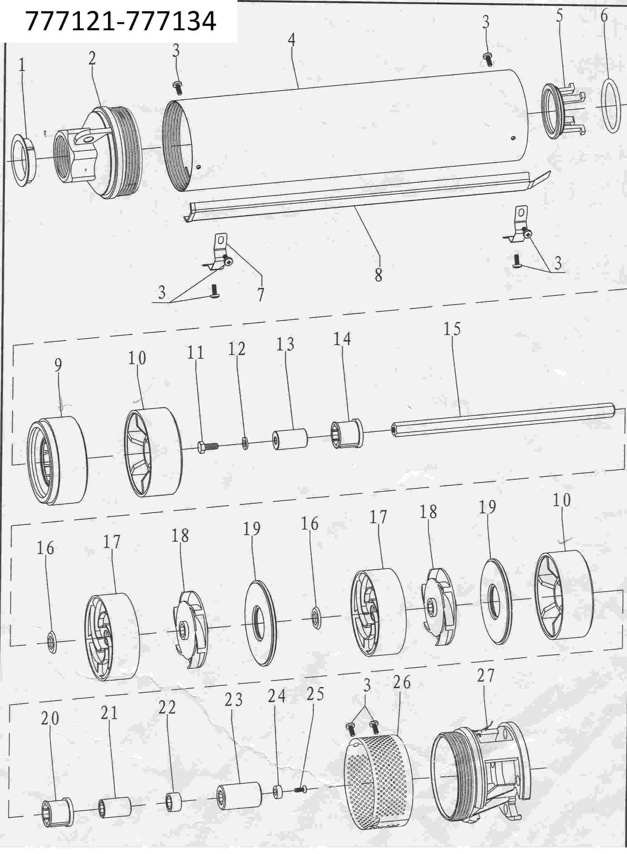 • Вал насосної частини: нержавіюча сталь AISI 304;