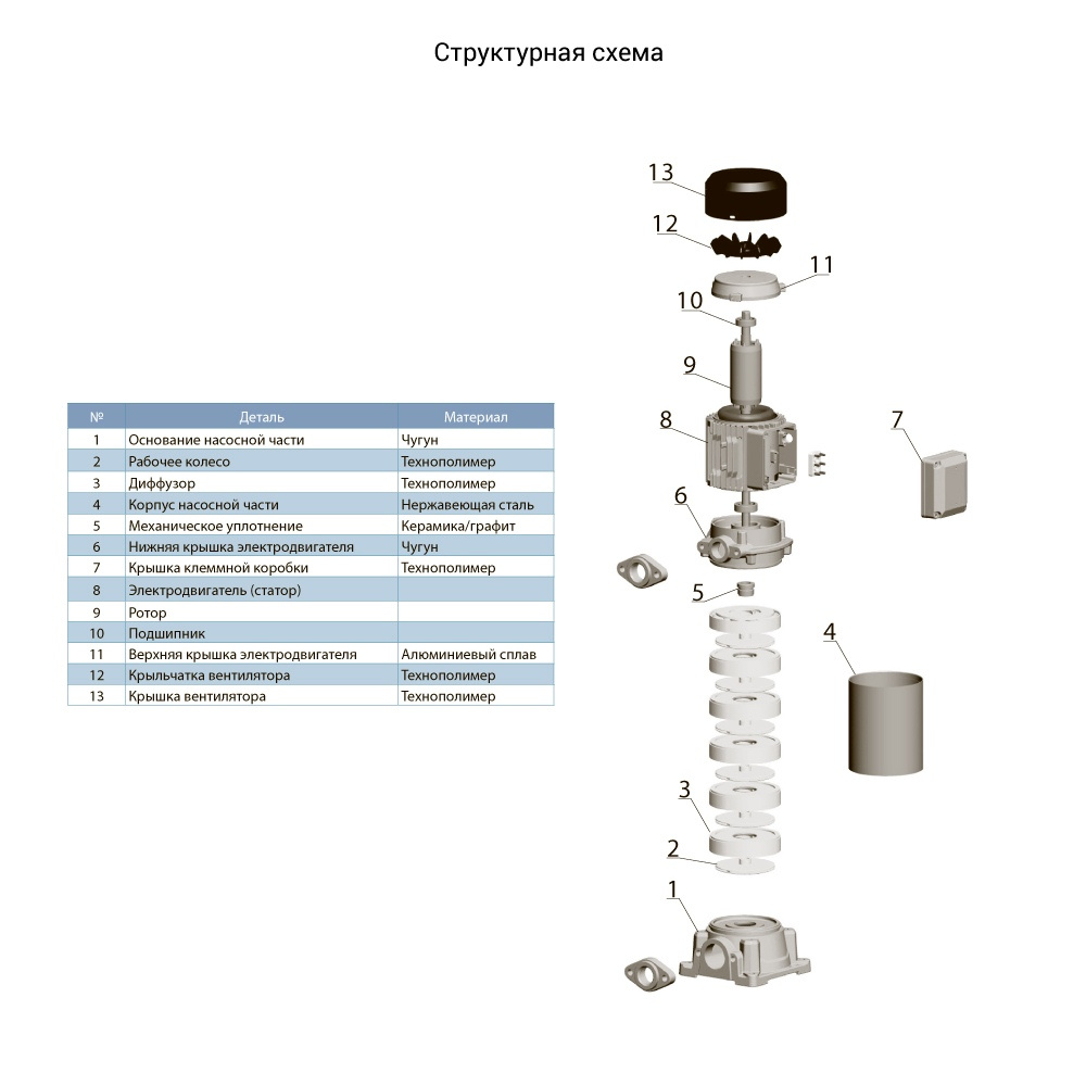 • Тип двигуна: асинхронний, закритого типу, повітряного охолодження, з вбудованим в обмотку термозахистом;
