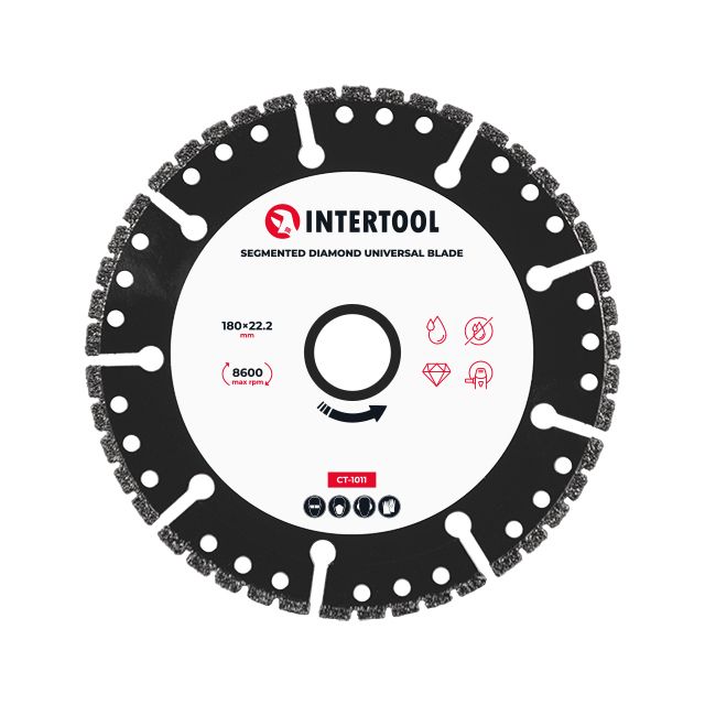 Диск алмазний універсальний сегментний 180*22.2 на кутову шліфувальну машину INTERTOOL CT-1011