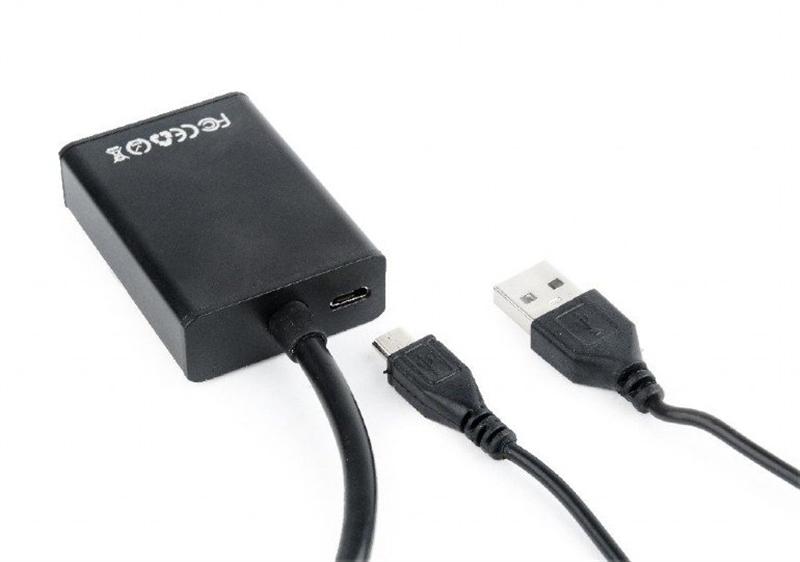 Адаптер Cablexpert (A-VGA-HDMI-01) VGA-HDMI, зі звуком, 0.15м, чорний