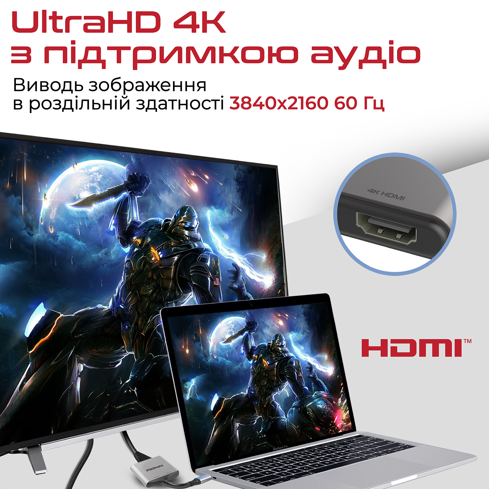- UltraHD 4K з підтримкою аудіо: Виводь зображення у роздільній здатності 3840x2160 60 Гц