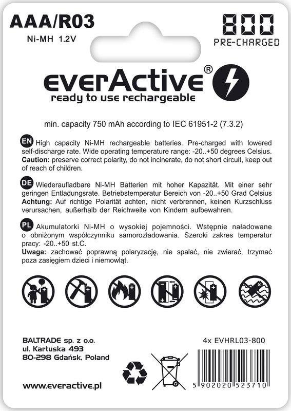 Акумулятор everActive AAA/HR03 Ni-MH 800mAh BL 4шт