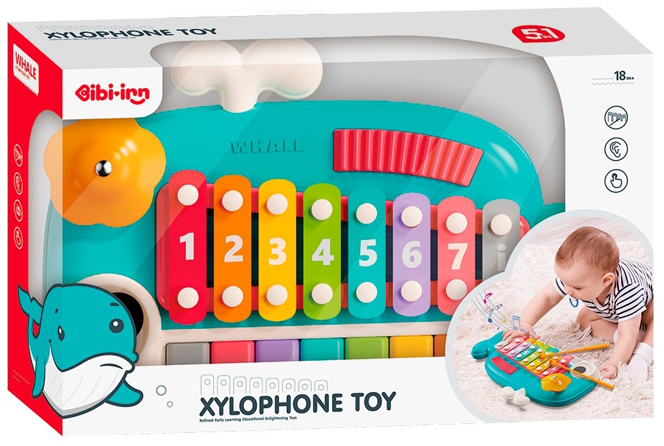 Іграшка ксилофон. Рекомендований вік: від 18 міс. Матеріал: поліпропилен, метал. Упаковка: 29.8*18.3*6.9 см. Розмір Іграшки: 18*29.5*6.5 см. Упаковка: коробка з вікном.