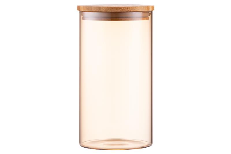 Банка для зберігання Ardesto Golden Moon, 760мл, скло, бамбук, кругла, золотистий (AR1376BLRG)