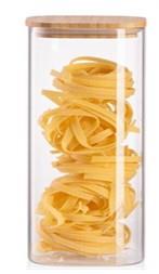 Банка для зберігання ARDESTO Midori 1300мл, скло, бамбук, квадратна, прозорий