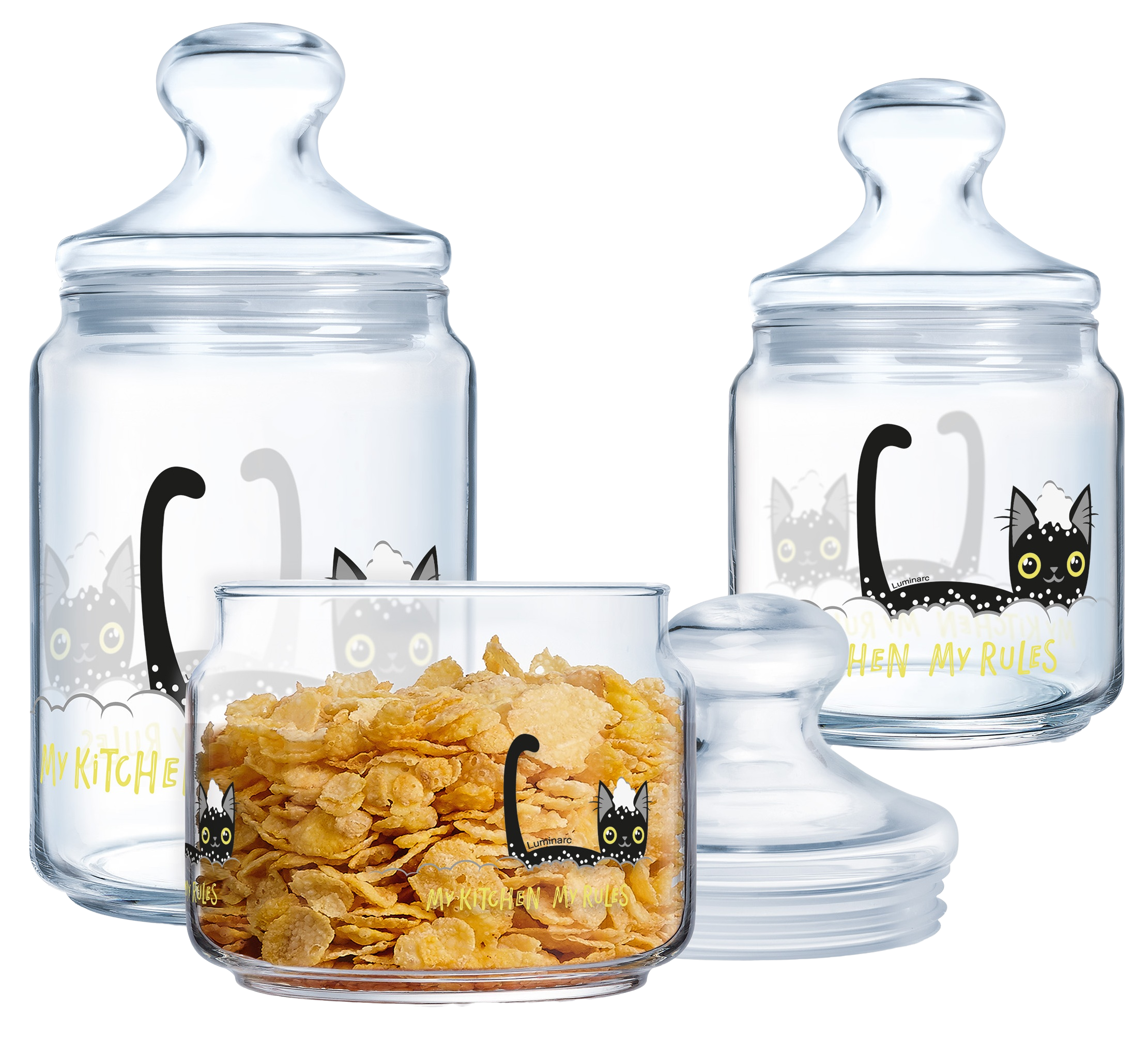 Набір банок LUMINARC CLUB THE CUTE. Об'єм: 0.5, 0.75, 1 л. Матеріал: скло. Матеріал кришки: скло