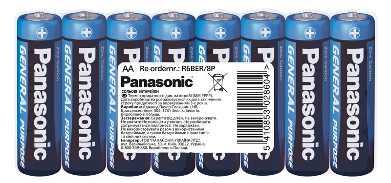 Батарейка Panasonic GENERAL PURPOSE вугільно-цинкова AA(R6) плівка, 8 шт.