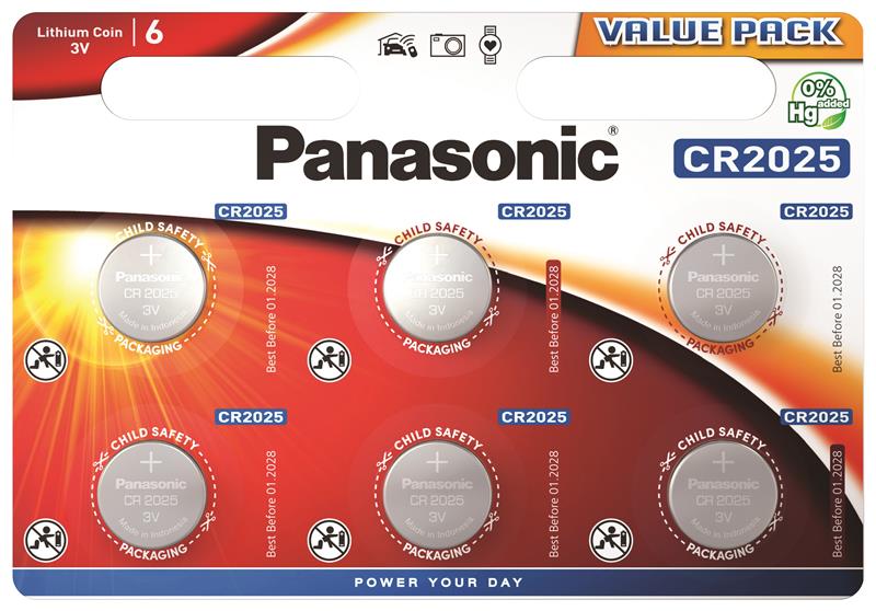Батарейка Panasonic літієва CR2025 блістер, 6 шт.
