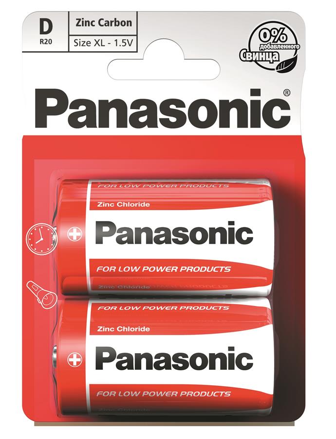 Батарейка Panasonic RED ZINC вугільно-цинкова D(R20) блістер, 2 шт.