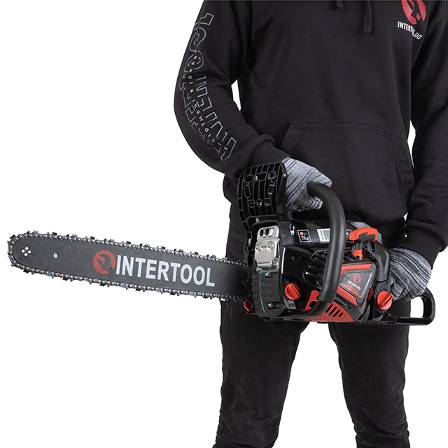 Широка передня ручка забезпечує кращу маневреність та зручне горизонтальне різання. М'яка накладка на ручці гарантує зручне захоплення та повний контроль над процесом. Простота в обслуговуванні обумовлена також автоматичним змащенням ланцюга.