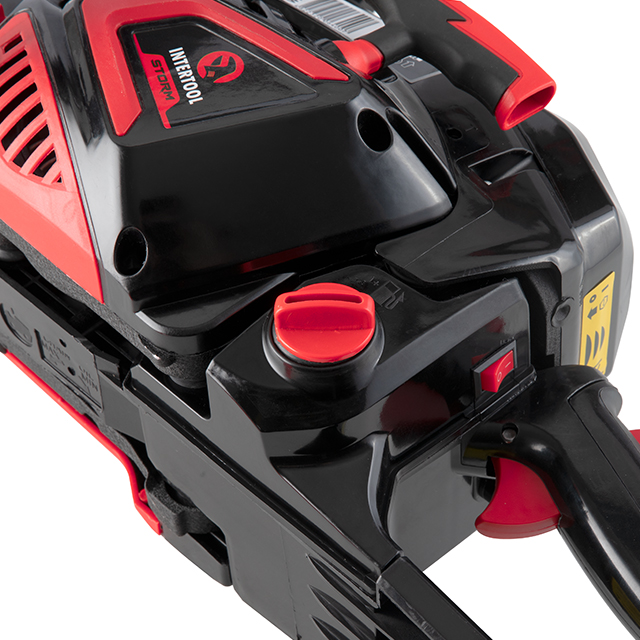 - Механічне гальмо ланцюга вбереже у разі зворотного удару або потрапляння пиляльного ланцюга на тверду перешкоду.