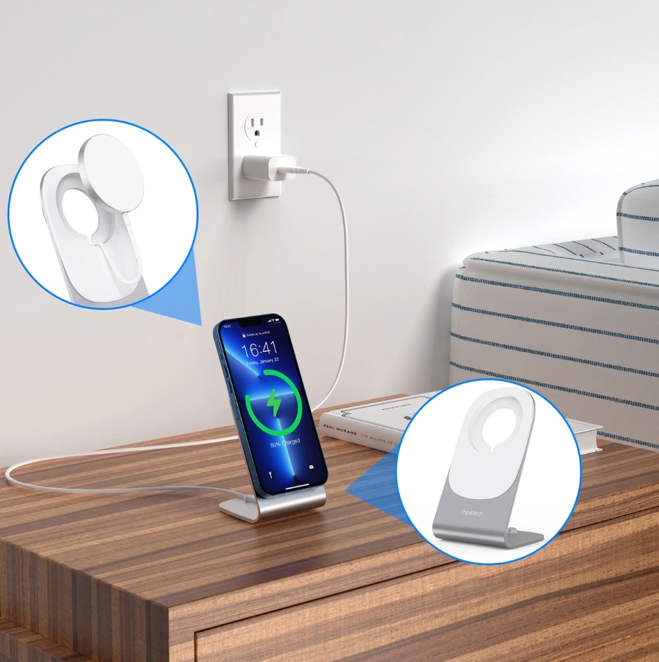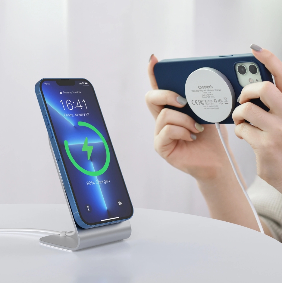 Ви шукаєте гарний зарядний пристрій, який легко та швидко зарядить ваш телефон без проводів? Бренд CHOETECH представляє бездротовий зарядний пристрій із вбудованим магнітом. Воно повністю сумісне зі стандартом MagSafe, тому забезпечує їх швидку та стабільну зарядку. Специфікація: Бренд: CHOETECH Довжина шнура: 150 см. Інтерфейс: USB Type-C Вхідний струм: 5/2 А; 9 В/2 А; 12 В/2 А Макс. Матеріал: алюміній, ПК Сумісно з телефонами, що підтримують бездротову зарядку Qi Потужність: 15 Вт/10 Вт/7.5 Вт/2.5 Вт Найбільш важливі особливості: Підтримує пікову потужність 15 Вт для пристроїв з підтримкою MagSafe ідеальне з’єднання між двома пристроями завдяки магнітам Регулювання напруги - призначена для зарядки малопотужних пристроїв - подача живлення автоматично підлаштовується під потреби обладнання, що заряджається. Дизайнерське виконання - метал, високоякісний матеріал, оснащений ковзними накладками для більшої стійкості. У набір входить: 1 зарядний пристрій Qi 1 х підставка-тримач Швидка та стабільна зарядка за технологією Qi Зарядний пристрій оснащений посиленою мідною котушкою, завдяки якій швидкість заряджання на 67% вища за стандартну. Інтелектуальна система управління Для роботи зарядного пристрою реалізовано інтелектуальну систему управління. Регулює споживану потужність в діапазоні від 10 до 5 Вт, захищає від короткого замикання та перегріву. Автоматично починає процес заряджання, коли телефон знаходиться поруч. Високий комфорт експлуатації Заряджання без кабелів і без необхідності виймати телефон із чохла (якщо його товщина не перевищує 6 мм). Безпека на відмінному рівні Високоякісні компоненти, чіп, двошарове покриття конструкції та реалізовані захисту роблять зарядний пристрій оптимально захищеним від пошкоджень. Виробник реалізував цілих 7 захистів від: перезарядки перегріву навантаження по струму короткого замикання Сумісність із популярними моделями телефонів Бездротовий зарядний пристрій підтримує телефони, оснащені функцією швидкого індуктивного заряджання Qi.