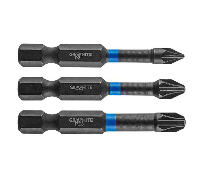Біти ударні GRAPHITE, набір 3шт, 1/4", PZ1/2/3x50мм, сталь S2 (56H542)