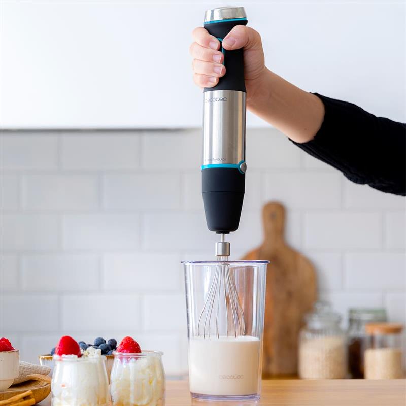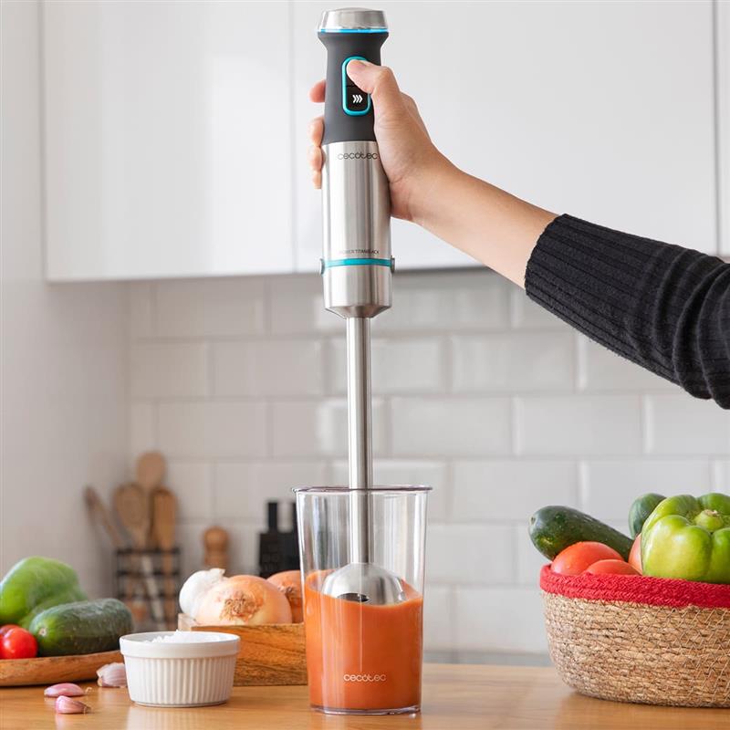 CECOTEC Power TitanBlack 1200 XL працює з високою продуктивністю завдяки своїй потужності 1200 Вт, швидко та без зусиль справляється з будь-яким завданням. Збивайте та змішуйте все, що знадобиться для Вашої страви.
