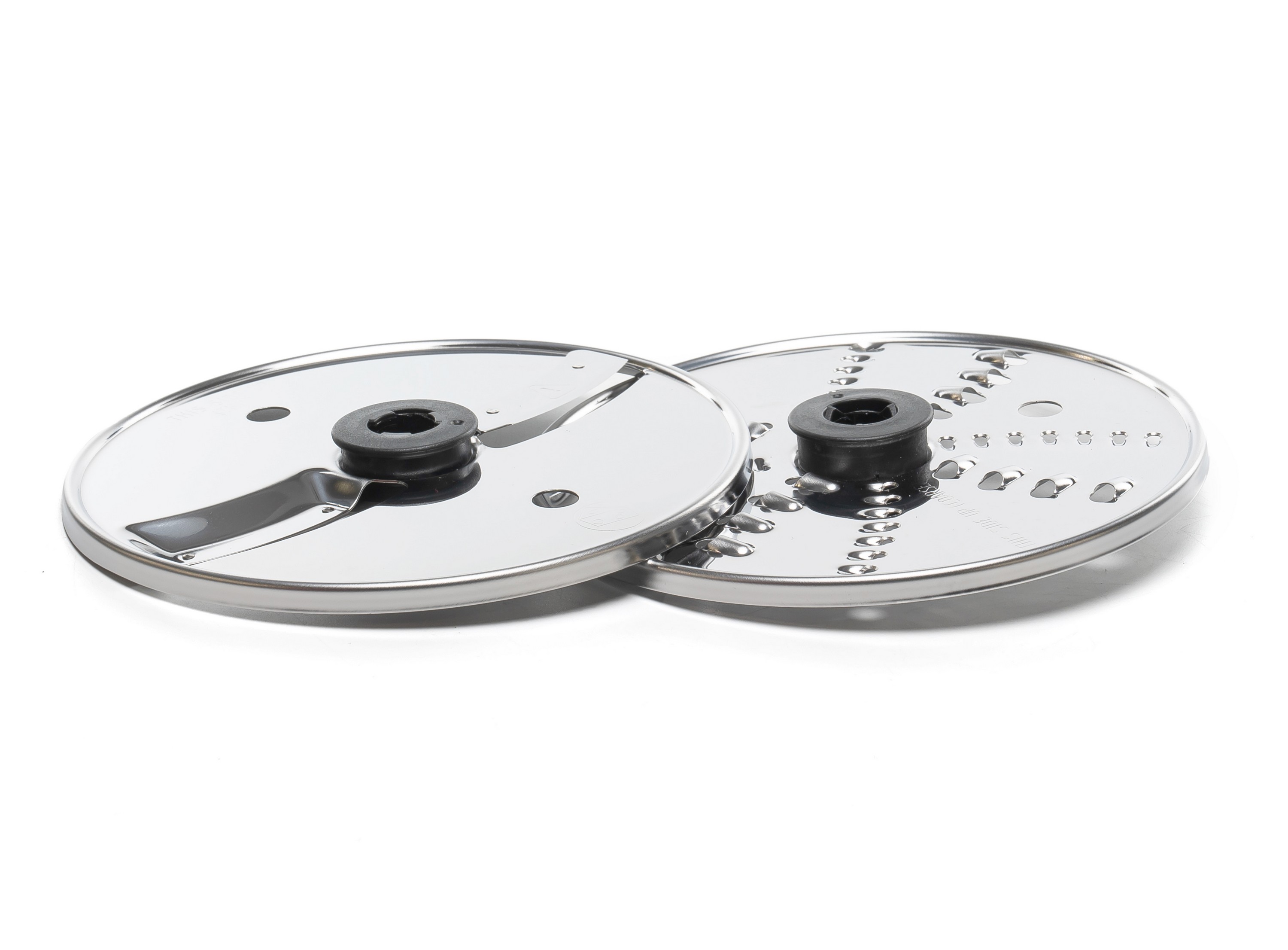 - Два двосторонні диски для шинкування, які дозволяють виконувати як крупну, так і тонку нарізку.