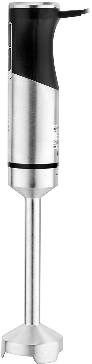 Простий, зручний у використанні занурювальний блендер відноситься до категорії бюджетних пристроїв та підійде тим покупцям, які шукають модель без насадок. У комплектації немає ні вінчика, ні подрібнювача, ні якихось інших насадок — тільки сам блендер і мірний стакан об'ємом 700 мл, в якій можна відміряти необхідну кількість інгредієнтів, змішувати їх та зберігати готову їжу.