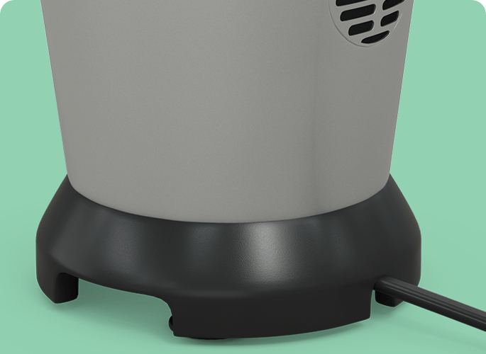 Щоб потужний прилад міцно тримався на місці, потрібні якісні рішення: завдяки гумовим ніжкам пристрій не рухатиметься під час роботи або коли ви знімаєте чашу.