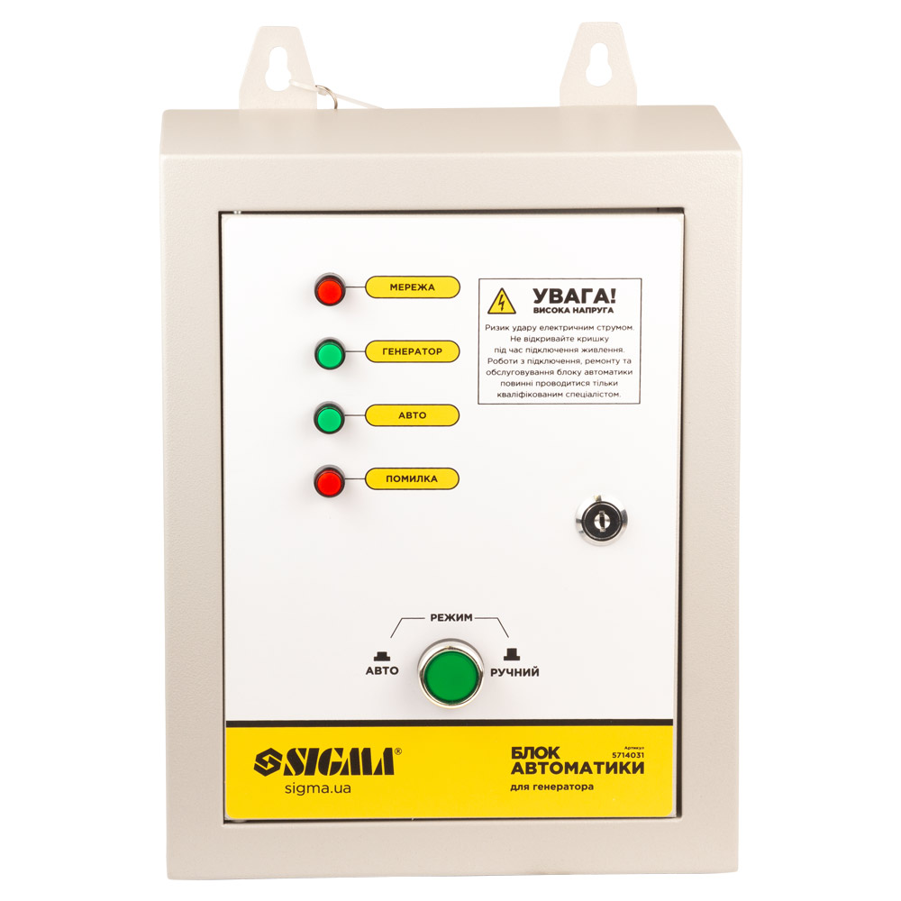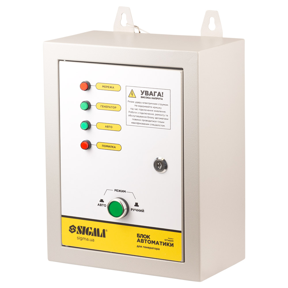 Блок автоматики 220В для інверторних генераторів до 10кВт SIGMA (5714031) застосовується для спільної роботи з генераторами, які мають опцію автоматичної роботи та винесений на передню панель роз'єм для підключення блоку автоматики.