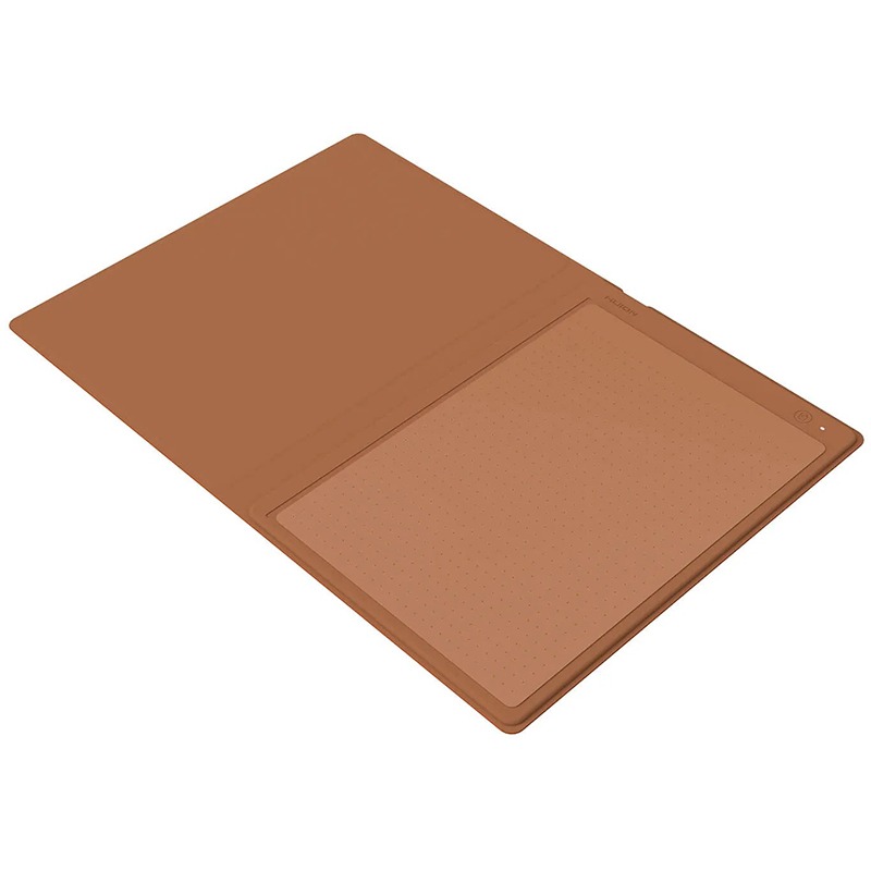 Huion Note має стандартний формат A5 та 50 сторінок змінного внутрішнього паперу, як звичайний записник. Захисна обкладинка блокнота зроблена з мереживного шкіряного матеріалу, що дозволяє зберегти ваші первозданні записи.