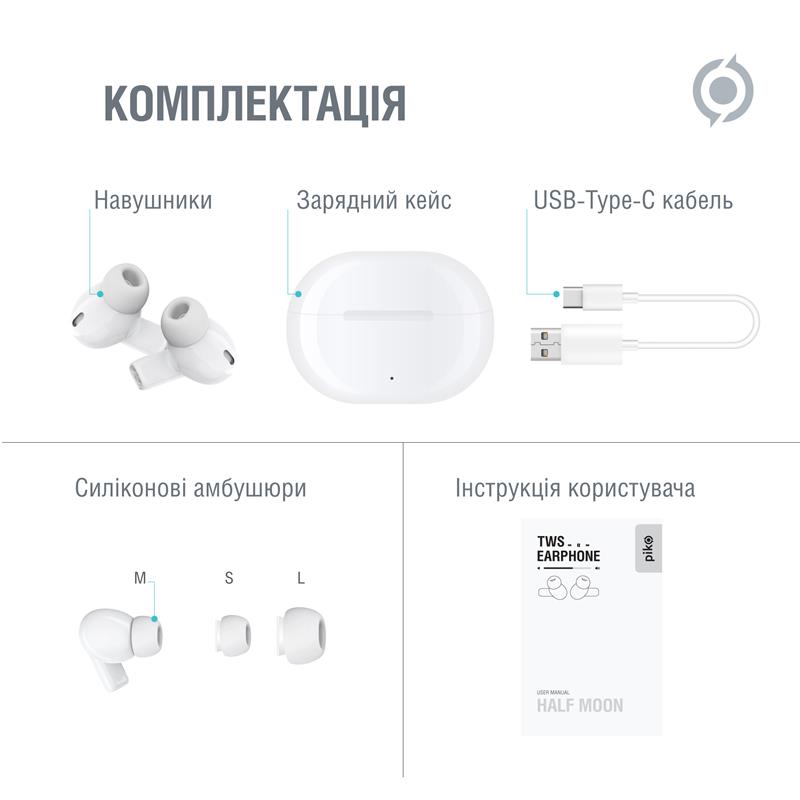 Bluetooth-гарнiтура Piko TWS-HalfMoon White (1283126583391)