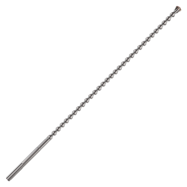 Твердосплавний наконечник з чотирма різальними гранями забезпечує легкий початок свердління та підвищену точність, що особливо важливо для центрування та запобігання ковзанню інструмента в початковій фазі свердління. Спіральна різальна частина ефективно виводить пил з робочого простору, мінімізуючи теплову дію, що важливо для довговічності бура та якості виконаних отворів.