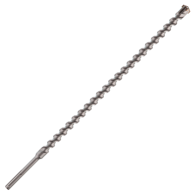 Твердосплавний наконечник з чотирма різальними гранями забезпечує легкий початок свердління та підвищену точність, що особливо важливо для центрування та запобігання ковзанню інструмента в початковій фазі свердління. Спіральна різальна частина ефективно виводить пил з робочого простору, мінімізуючи теплову дію, що важливо для довговічності бура та якості виконаних отворів.