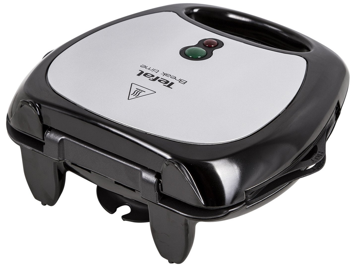 Бутербродниця оснащена світловими індикаторами, які повідомляють про готовність робочої зони до початку приготування. У нижній частині приладу розташовані ніжки, які забезпечують йому стійке положення.