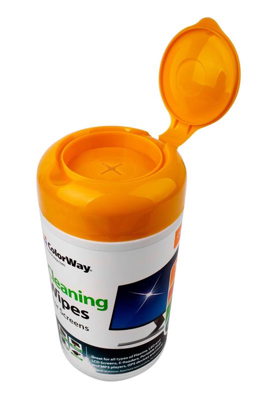 Чистячі серветки ColorWay для чищення екранів, моніторів, ноутбуків, телевізорів, смартфонів, комп'ютерів, периферії та іншої офісної та домашньої електроніки. Призначені для вологого чищення сильних забруднень, плям, потертостей, пилу та інших плям різного ступеня забрудненості. Серветки виготовлені з високоякісного матеріалу і легко відриваються. Абсолютно нейтральні на запах. Після чищення не залишають розлучень, швидко висихають, забезпечуючи відмінний результат. Пластикова туба приємна у використанні та надійно упакована. Зручний формат для зберігання і не заважає навіть постійно перебуваючи на столі. Щільно прилегла кришка націлена на максимальне збереження вологих серветок глибокого просочення. Не призначені для скляних поверхонь. Універсальні серветки для екранів та електроніки Склад: Вологі серветки 100 шт, розмір – 12х12 см