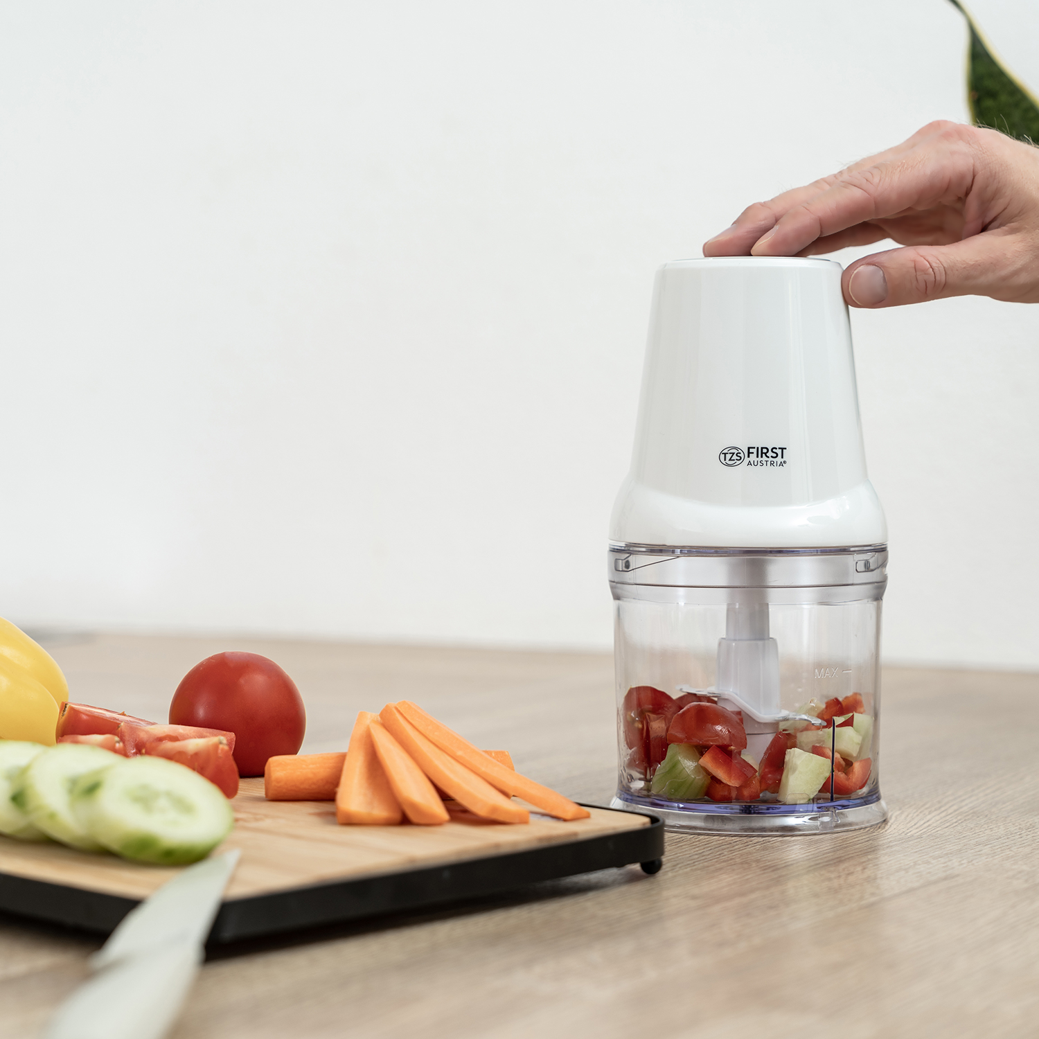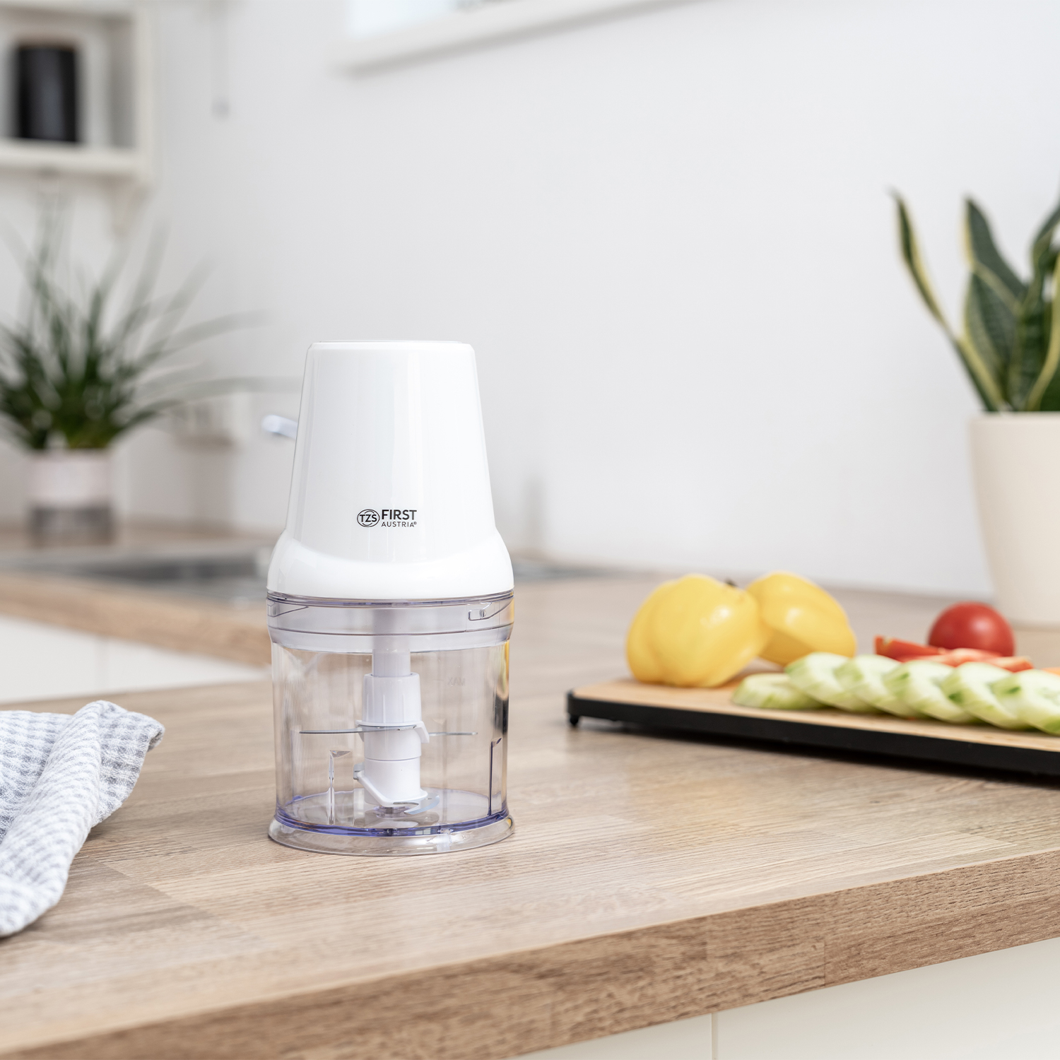 Електричний універсальний подрібнювач - потужний помічник, який подрібнює, нарізає, змішує і пюрирует їжу. Блендер підходить для приготування та випікання різноманітних страв, а також нарізає зелень для салату, подрібнює горіхи та перетворює фрукти на корисні смузі. Завдяки потужності 400 Вт і чотирьом лезам з нержавіючої сталі всі інгредієнти точно нарізаються і збираються в скляну ємність 0,5 л. Сучасний дизайн, а також зручний розмір роблять цей потужний кухонний комбайн незамінним на кожній кухні.