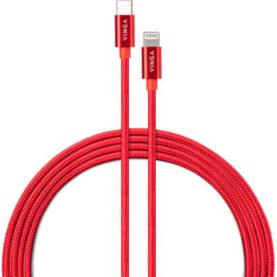Дата кабель USB-C to Lightning 1.0m 20W Nylon Red Vinga (VCDCCLM531)