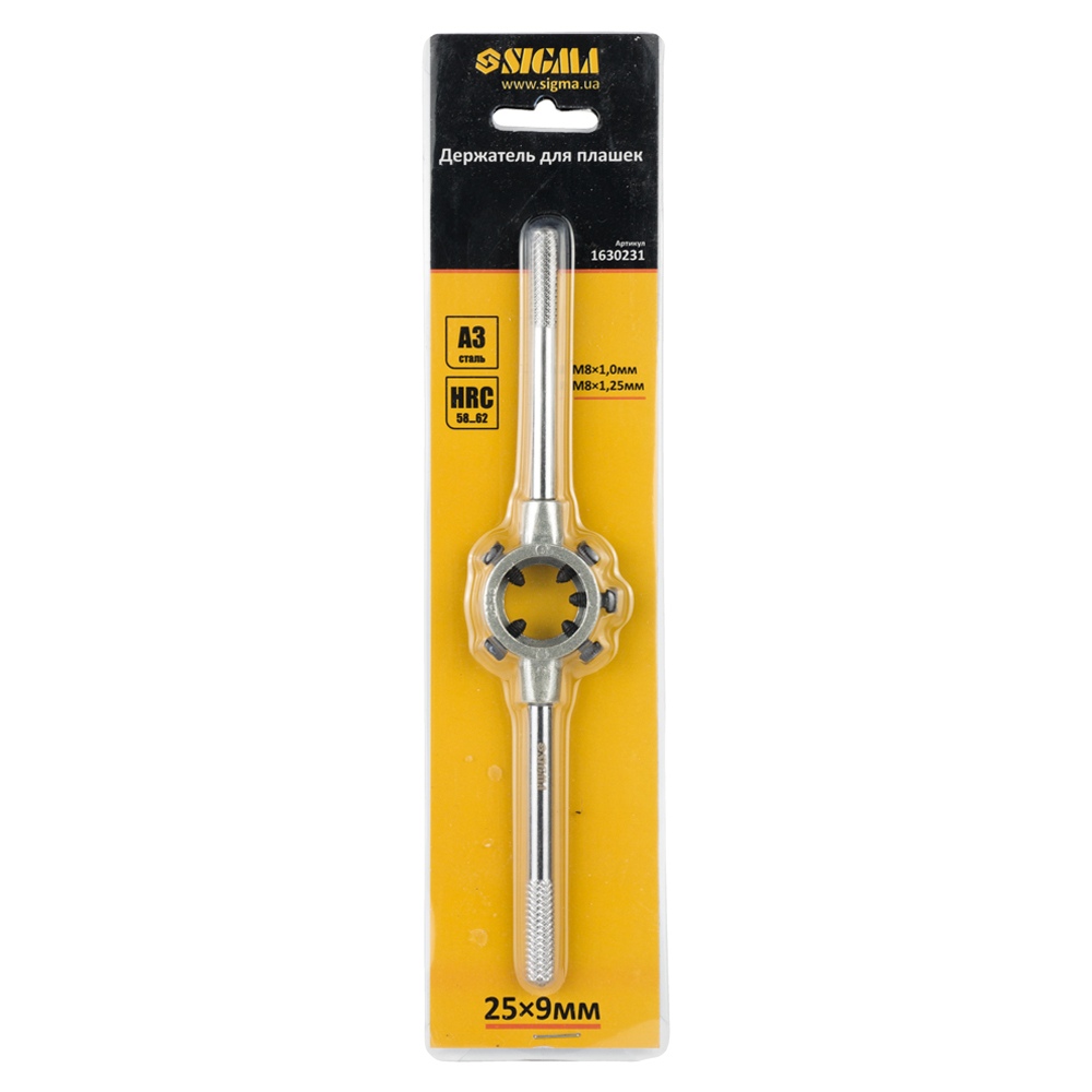 Тримач для плашок 25×9мм Sigma 1630231 призначений для фіксації різьбонарізного інструменту та подальшого нарізування різьблення.