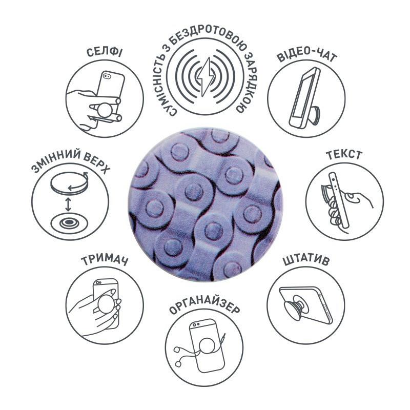 LUXE CUBE Pop 007 має змінний верх – просто складіть верхню частину, натисніть та поверніть на 90 градусів, щоб зняти верх. Потім можна використовувати бездротову зарядку або змінити верхню частину на іншу. Легко поміняйте місцями верхню частину, щоб змінити стиль або за допомогою бездротової зарядки. Забезпечує надійне зчеплення, щоб ви могли надсилати текстові повідомлення однією рукою, знімати найкращі фотографії та переглядати відео. Функціонує як зручна підставка, завдяки якій ви можете переглядати відео або робити селфі. Надійна липучка 3М приклеюється до більшості пристроїв та чохлів. Розміри: діаметр 39,74 мм х 7 мм та 24,25 мм у розкладеному вигляді