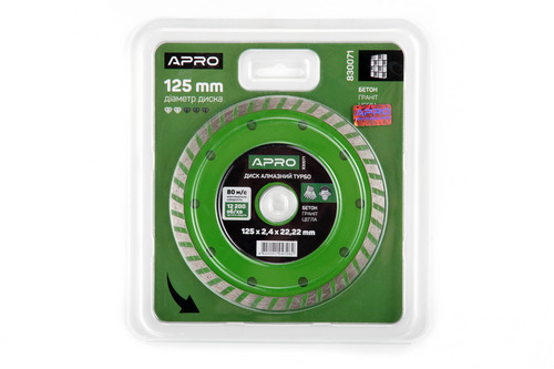 Диск отрезной по бетону 125х2.4х22.22мм (16-18%) Турбо APRO