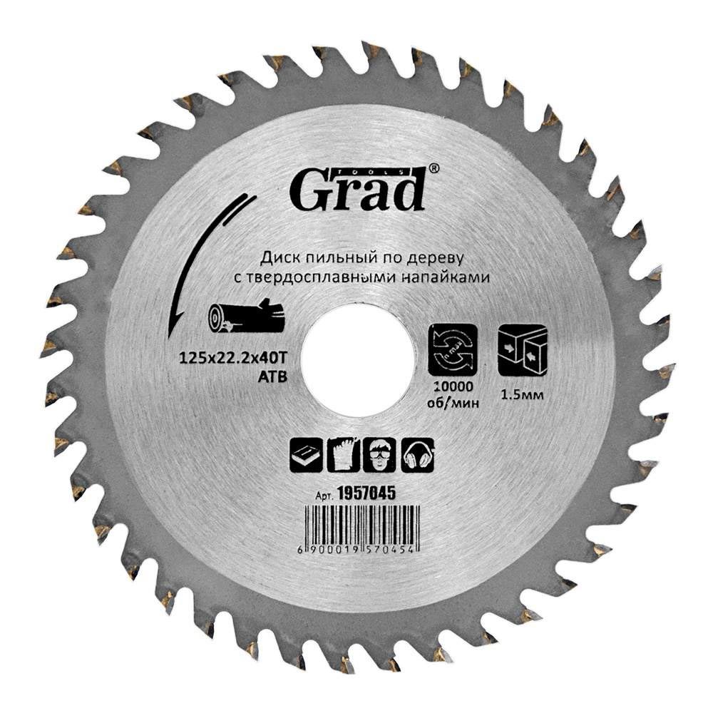 Диск пиляльний по дереву з твердосплавними напайками Ø125×22.2×40Т, 10000об/хв GRAD (1957045)