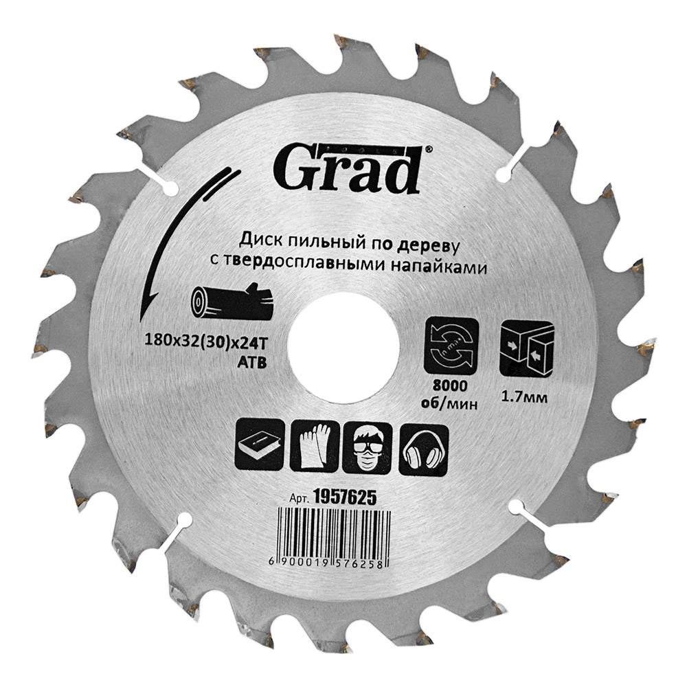 Диск пиляльний по дереву з твердосплавними напайками Ø180×32(30)×24Т, 8000об/хв GRAD (1957625)