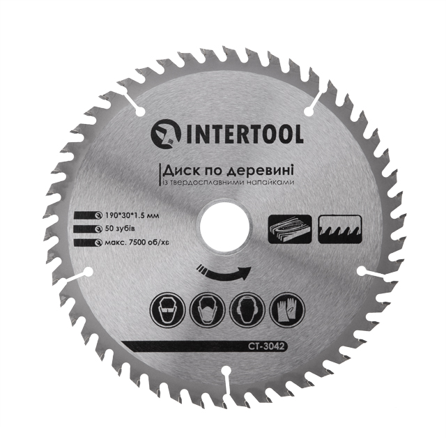 Пиляльний диск по дереву INTERTOOL CT-3042 призначений для використання з дисковими пилами. Підходить як для поздовжнього, так і для поперечного розпилювання деревини різної твердості. Діаметр диска - 190 мм, посадковий отвір - 30 мм.