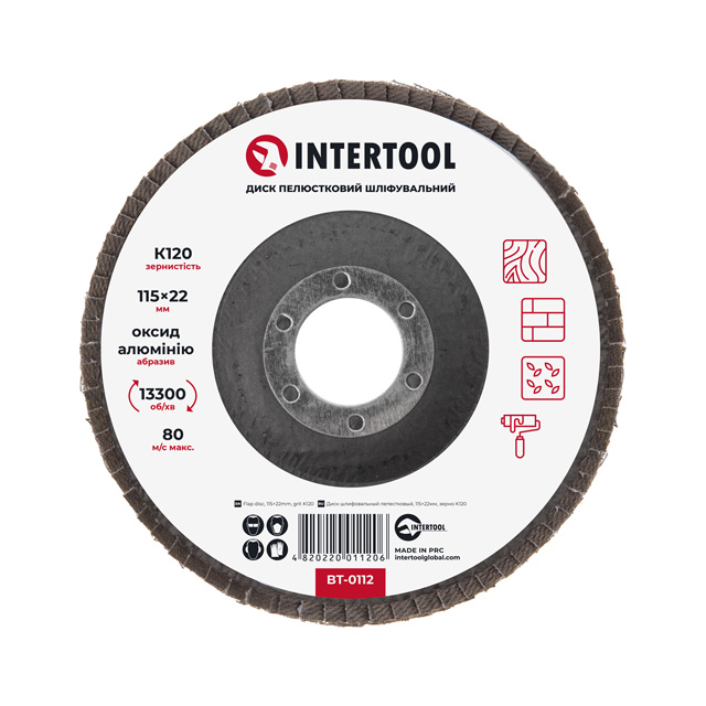 Диски пелюсткові пропонуються різної зернистості, що дозволяє вибирати оптимальний варіант залежно від конкретних завдань – від грубого видалення матеріалу до більш тонкої обробки. Маркування даного диска К120 передбачає дрібну зернистість для фінішної обробки.