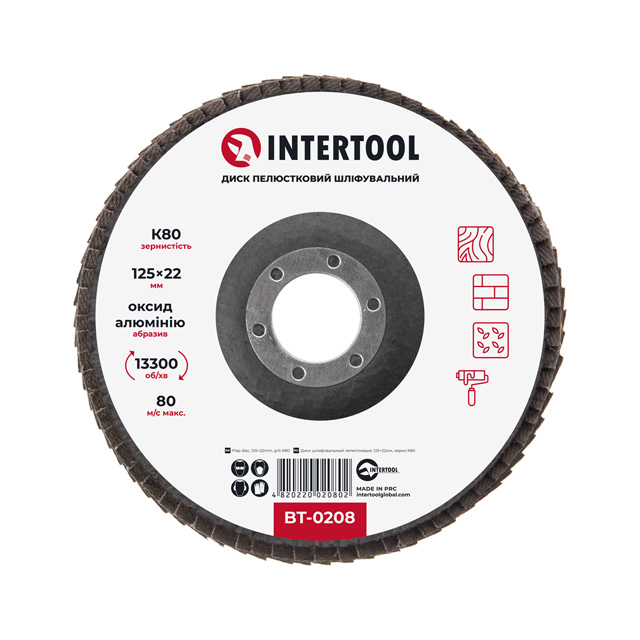 Диски пелюсткові пропонуються різної зернистості, що дозволяє вибирати оптимальний варіант залежно від конкретних завдань – від грубого видалення матеріалу до більш тонкої обробки. Маркування даного диска К80 передбачає середню зернистість для шліфування після чорнової обробки.