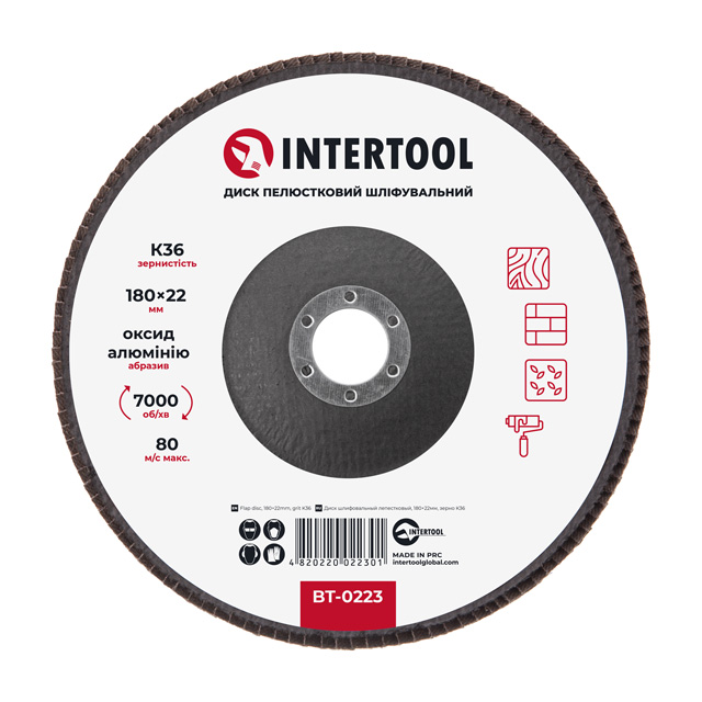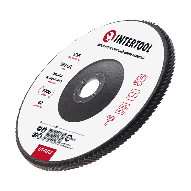 Диск шліфувальний пелюстковий, 180×22 мм, зерно K36, 7000 об/хв