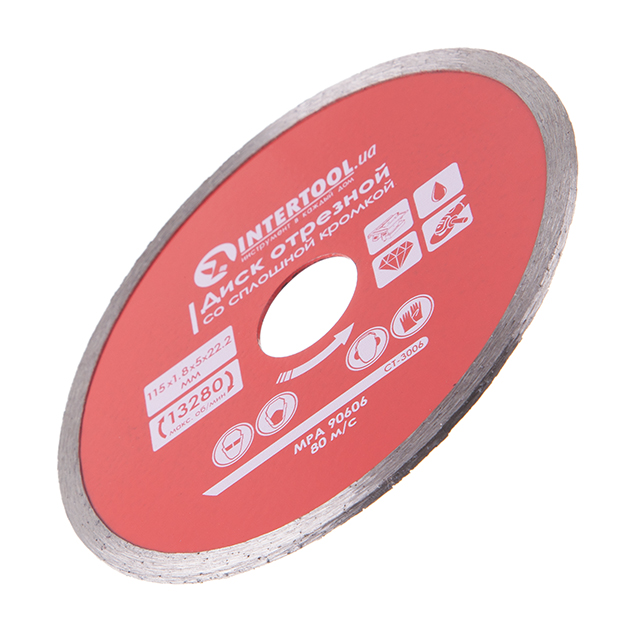 Диск відрізний алмазний, з суцільною кромкою, 115 мм, 22-24%, 13280 об/хв