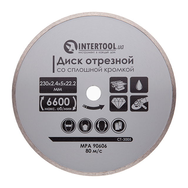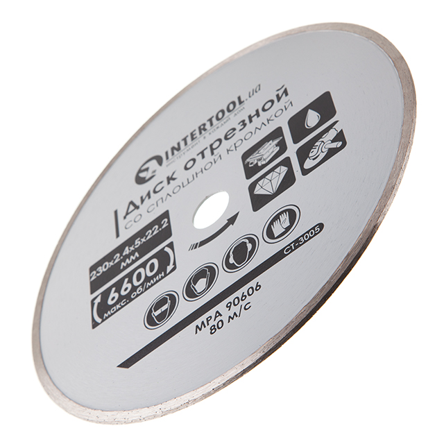 Диск відрізний алмазний, з суцільною кромкою, 230 мм, 16-18%, 6600 об/хв