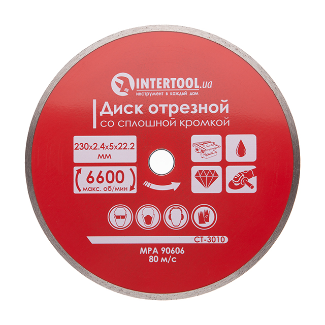 Диск відрізний алмазний, з суцільною кромкою, 230 мм, 22-24%, 6600 об/хв