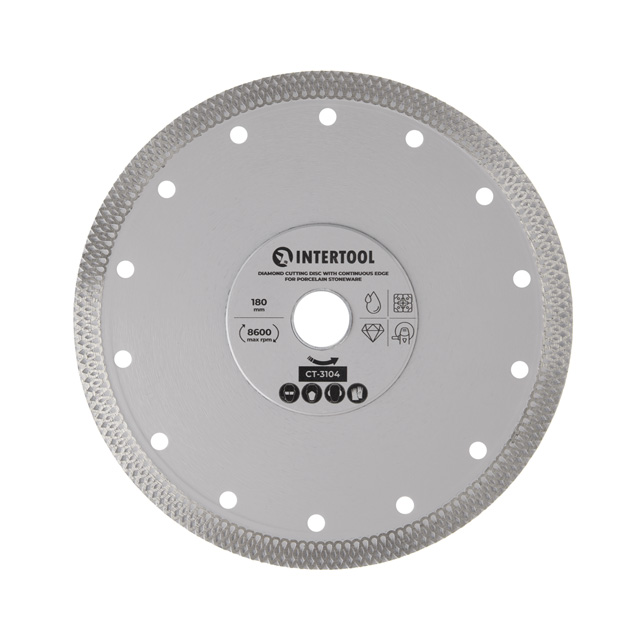 Диск діаметром 180 мм створений для ефективного різання різноманітних матеріалів, таких як керамограніт, плитка, мармур тощо. Виготовлений з високоякісного алмазного матеріалу, має високу міцність і довговічність, що робить його ідеальним інструментом для різноманітних будівельних і ремонтних робіт. Призначений для використання з кутовими шліфмашинами (болгарками) із високою швидкістю обертання - до 8600 об/хв.