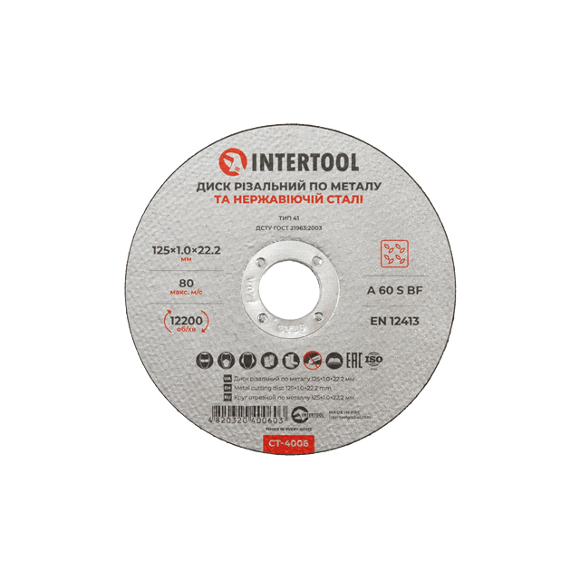 Диск відрізний по металу, 125×1,0×22,2 мм, 12200 об/хв